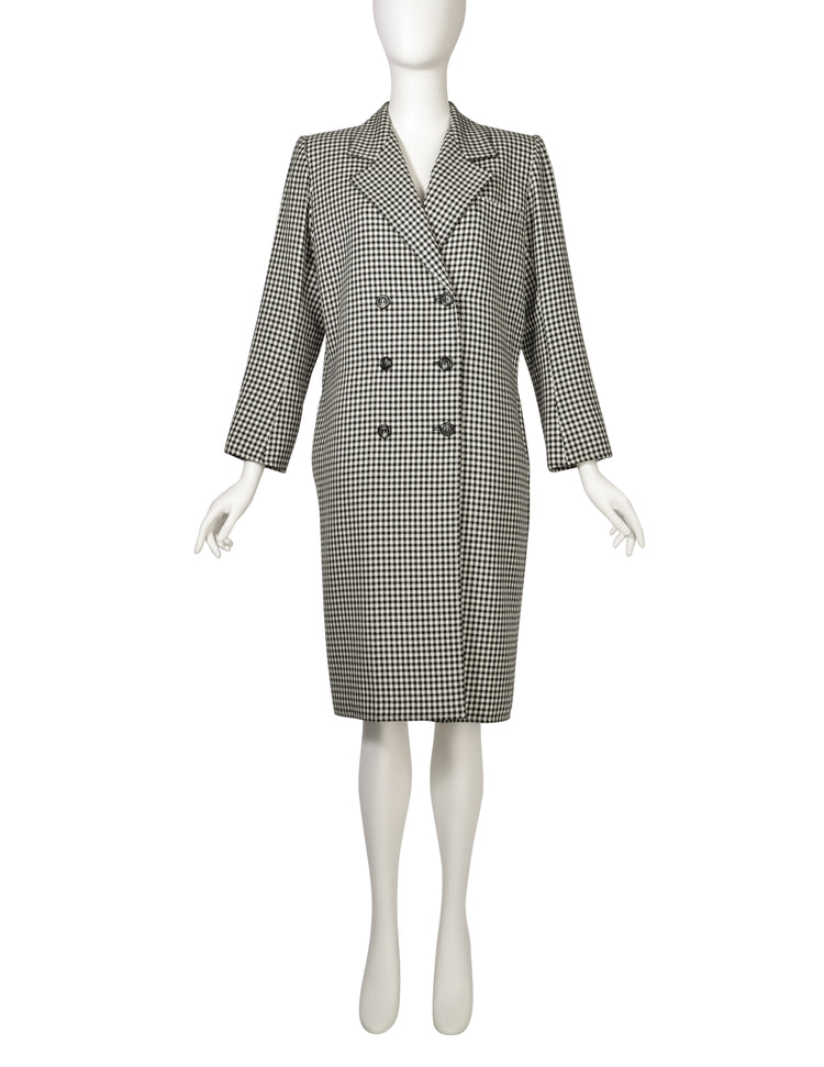 Yves Saint Laurent Vintage SS 1984 Black White Houndstooth Wool Double Breasted Coat