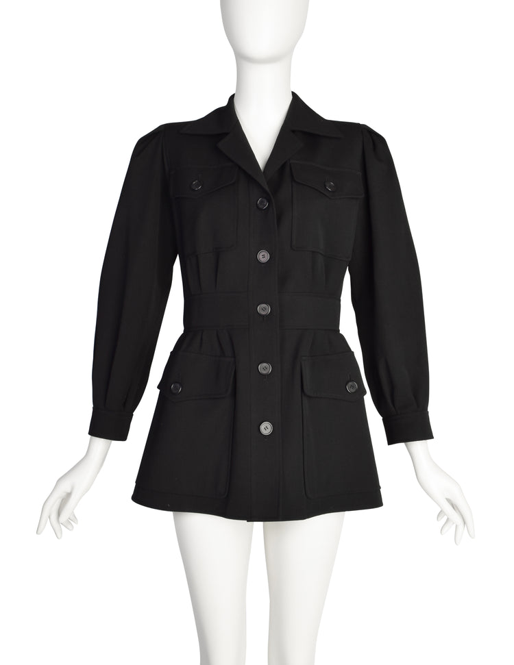 Yves Saint Laurent Vintage Black Wool Gabardine Safari Style Jacket
