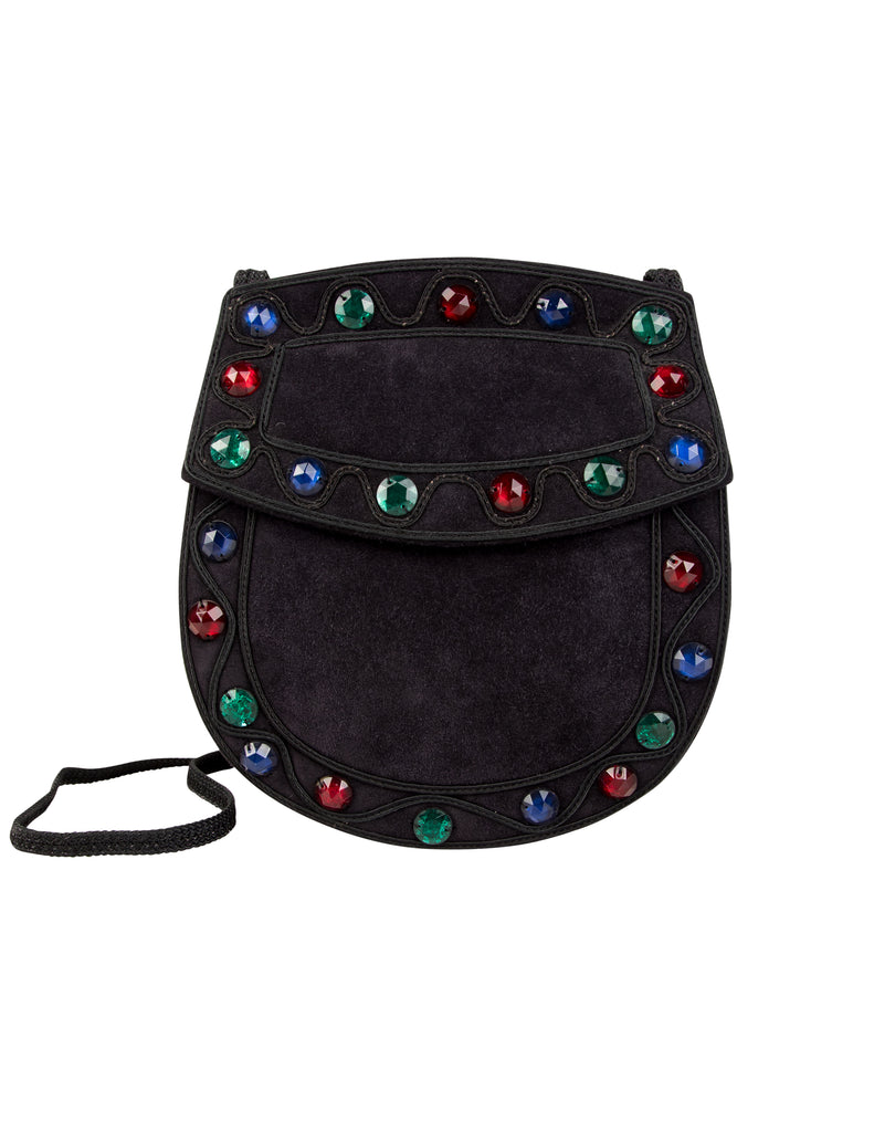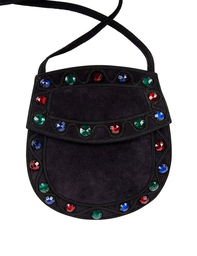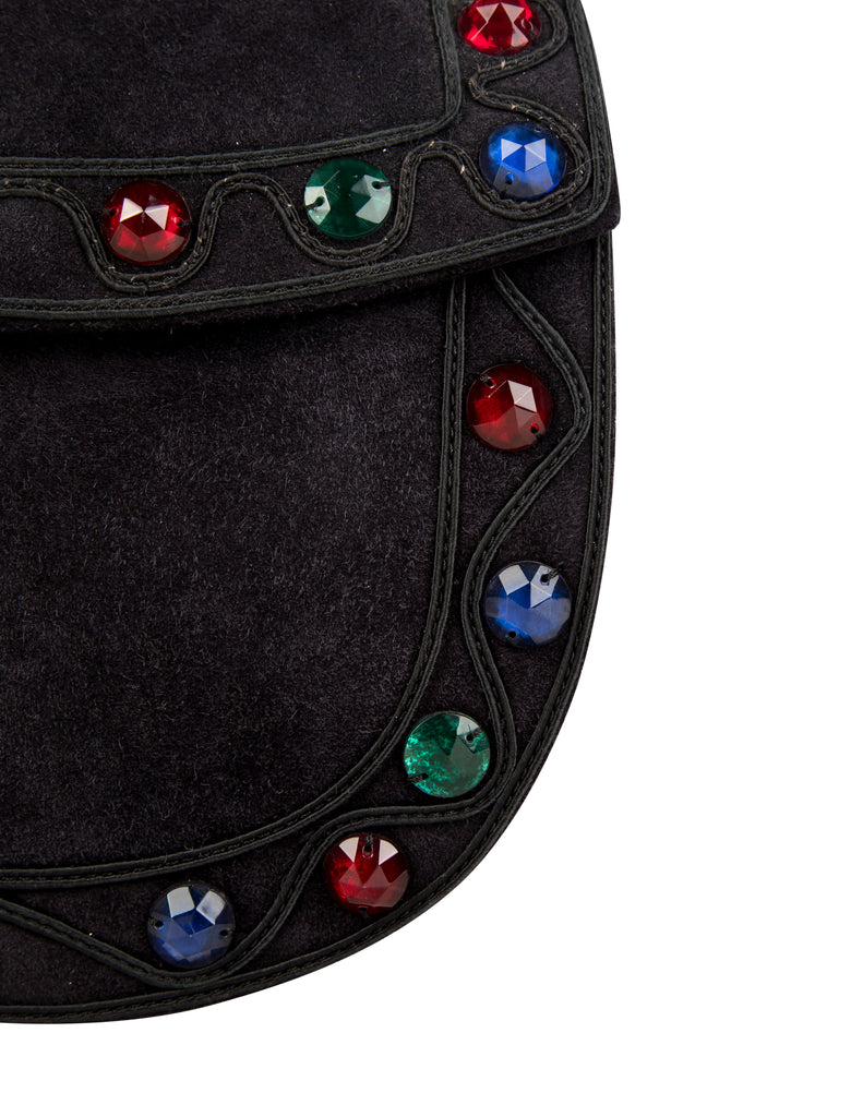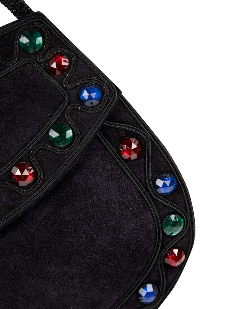 Yves Saint Laurent Vintage Gem Adorned Black Suede and Passementerie Bag