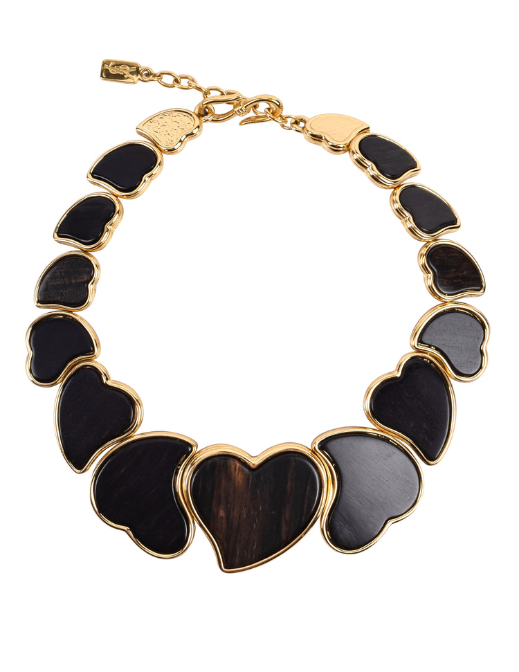 Yves Saint Laurent Vintage Golden Ebony Wood Heart Necklace
