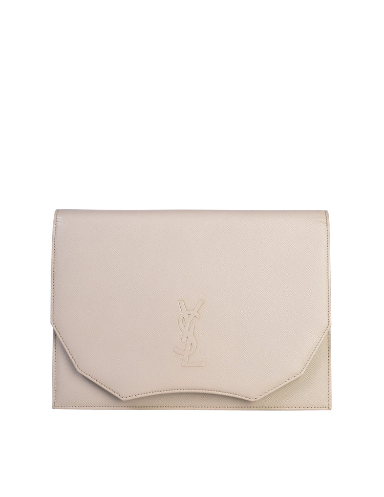 Yves Saint Laurent Vintage Off-White Eggshell YSL Logo Saffiano Leather Clutch Bag