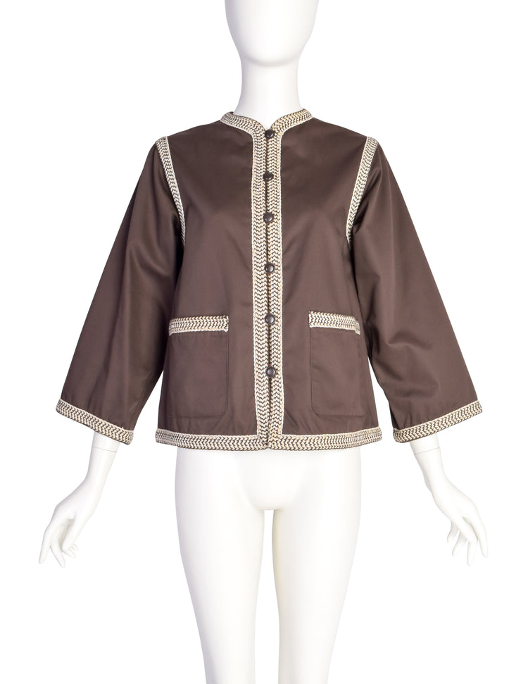 Yves Saint Laurent Vintage SS 1977 Brown Cotton Braided Trim Jacket